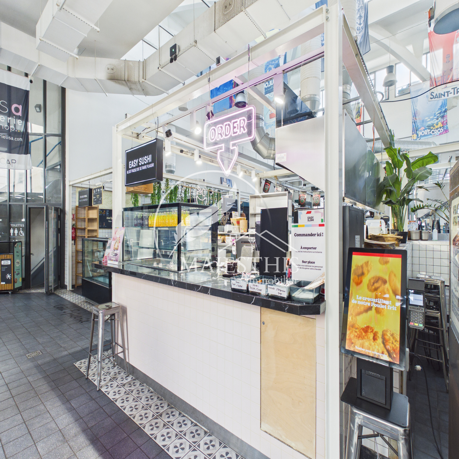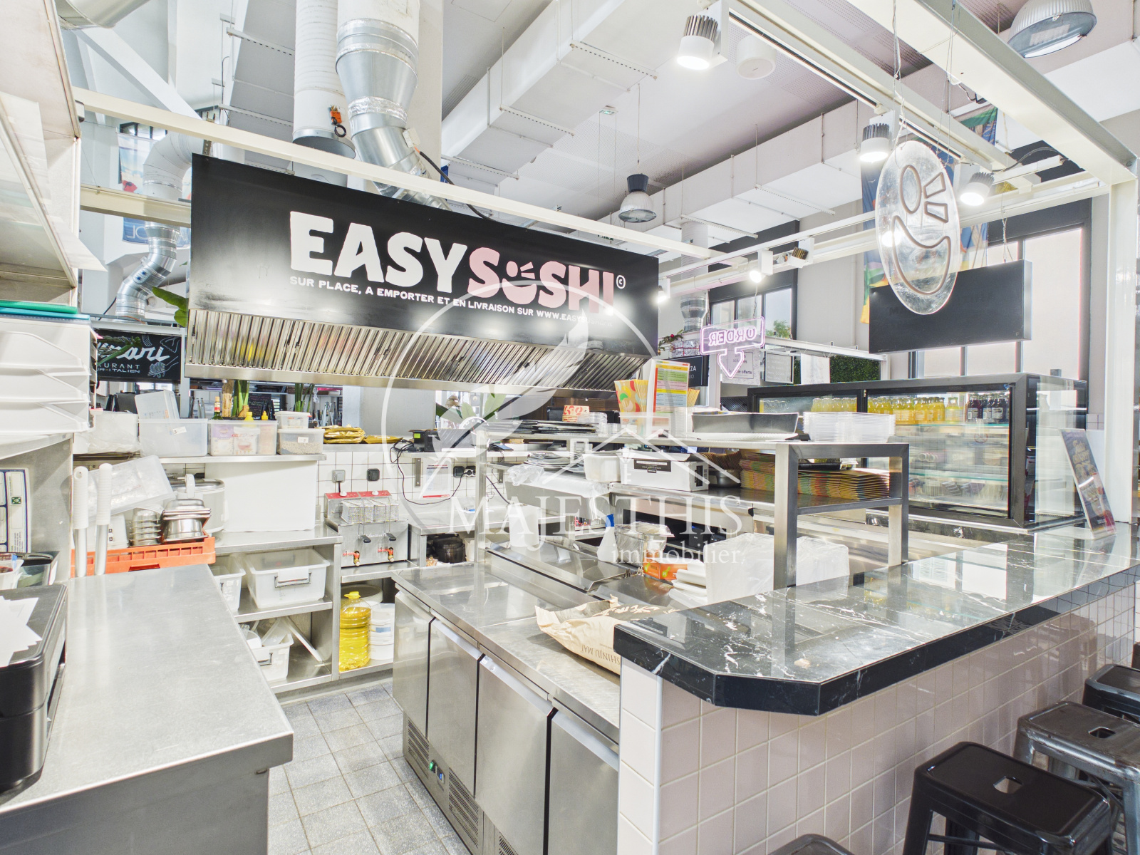 - Stand de 18,80m2 pour fabrication et vente de sushis et poke bowls, avec cuisine entièrement équipée aménagée et fonctionnelle