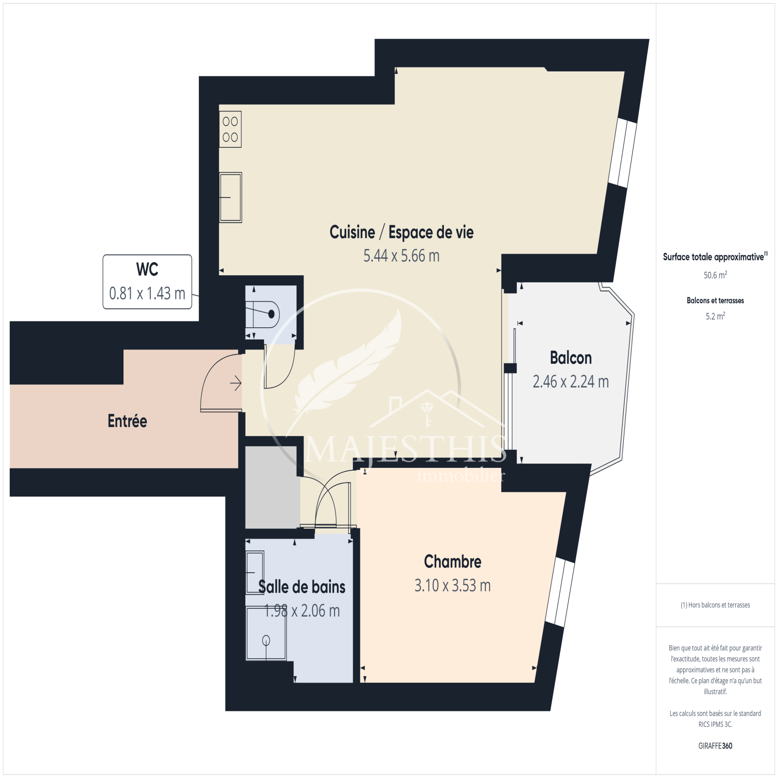 Il se compose également d'une chambre avec placard, d'une salle d'eau et de WC indépendant.