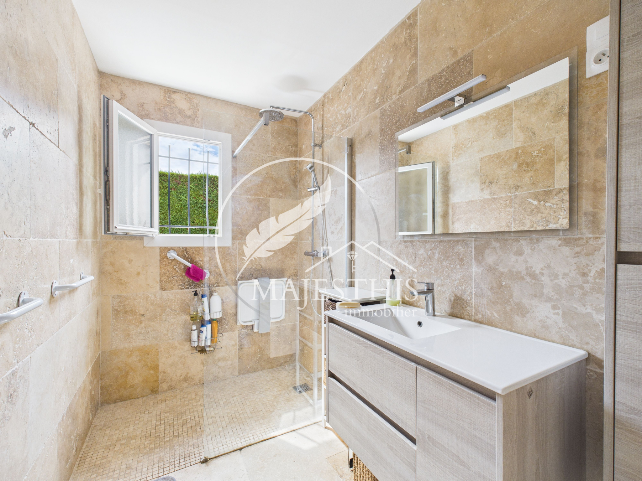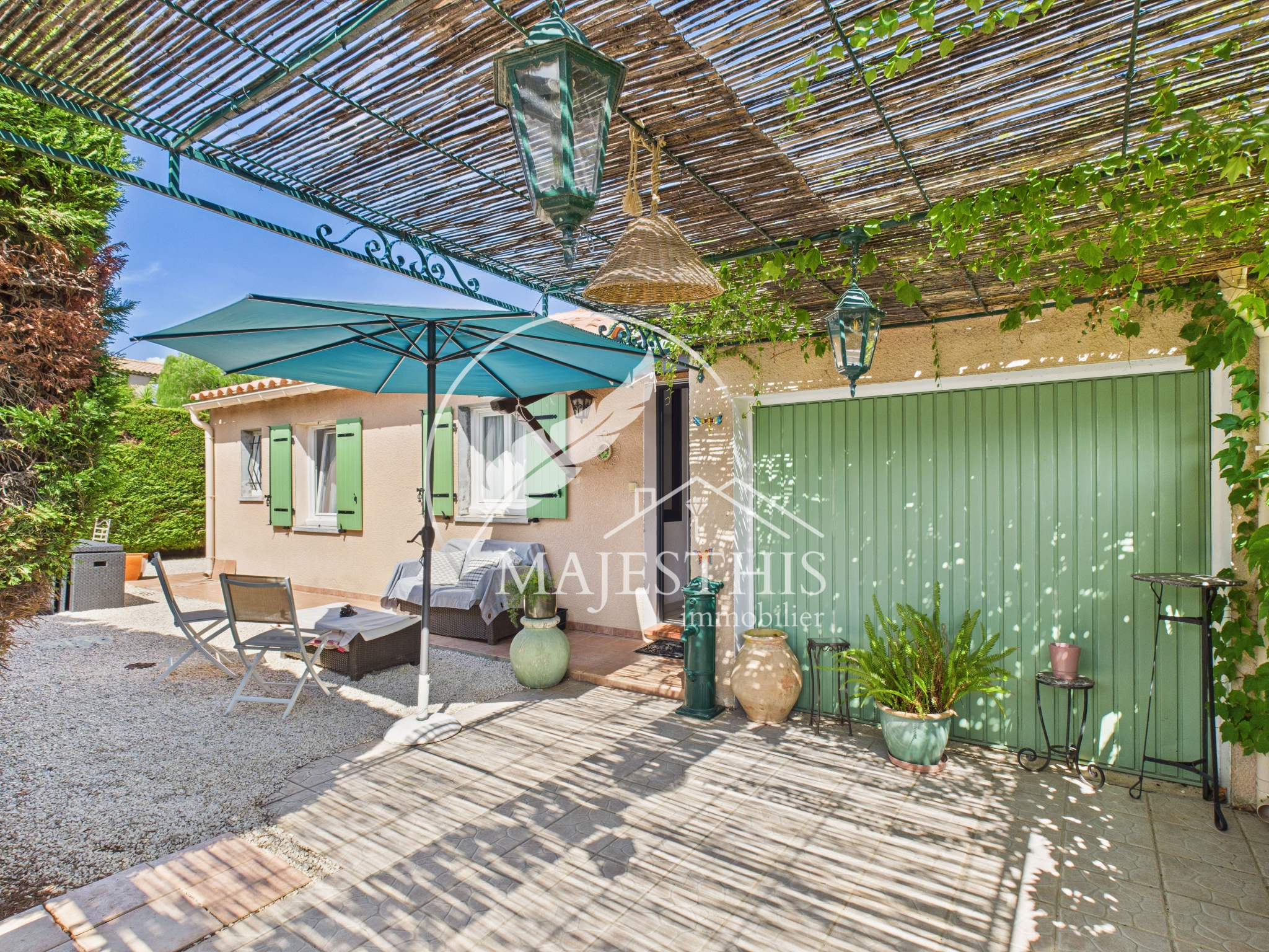 L'équipe Majesthis Immobilier Hyères vous propose cette très belle maison de plain pied située dans le quartier très recherché de l'Almanarre à Hyères.A quelques minutes à pied, en vélo ou en voiture de la célèbre plage de l'Almanarre proche de la presqu"ile de Giens, cette maison des années 80, intégralement rénovée il y a quelques années, vous ravira tout d'abord par le calme du quartier dans laquelle elle est édifiée.La maison s'ouvre sur un très beau séjour avec cuisine ouverte aménagée, équipée et son ilot central. La partie nuit propose trois chambres orientées à l'Est et à l'Ouest, un wc indépendant et une belle salle d'eau avec douche à l'italienne. Le séjour propose deux grandes baies vitrées donnant sur une très agréable terrasse avec sa cuisine d'été, le tout abrité par un store ban.Vous pourrez profiter du jardin intégralement plat pouvant recevoir une piscine. Récemment la toiture a été nettoyée, l'isolation par le toit refaite, la plomberie et l'électricité revues, les volets et huisseries changées en PVC avec ouvertures oscillo-battantes, la cuisine ouverte renouvelée.Possibilité d'agrandissement au sol selon le PLU en vigueur dans la commune.Un garage avec belle hauteur sous plafond vous permettra d'y garer votre véhicule ou bien de disposer d'une surface de stockage appréciable.Une visite virtuelle est disponible sur demande.Bien rare sur le marché !