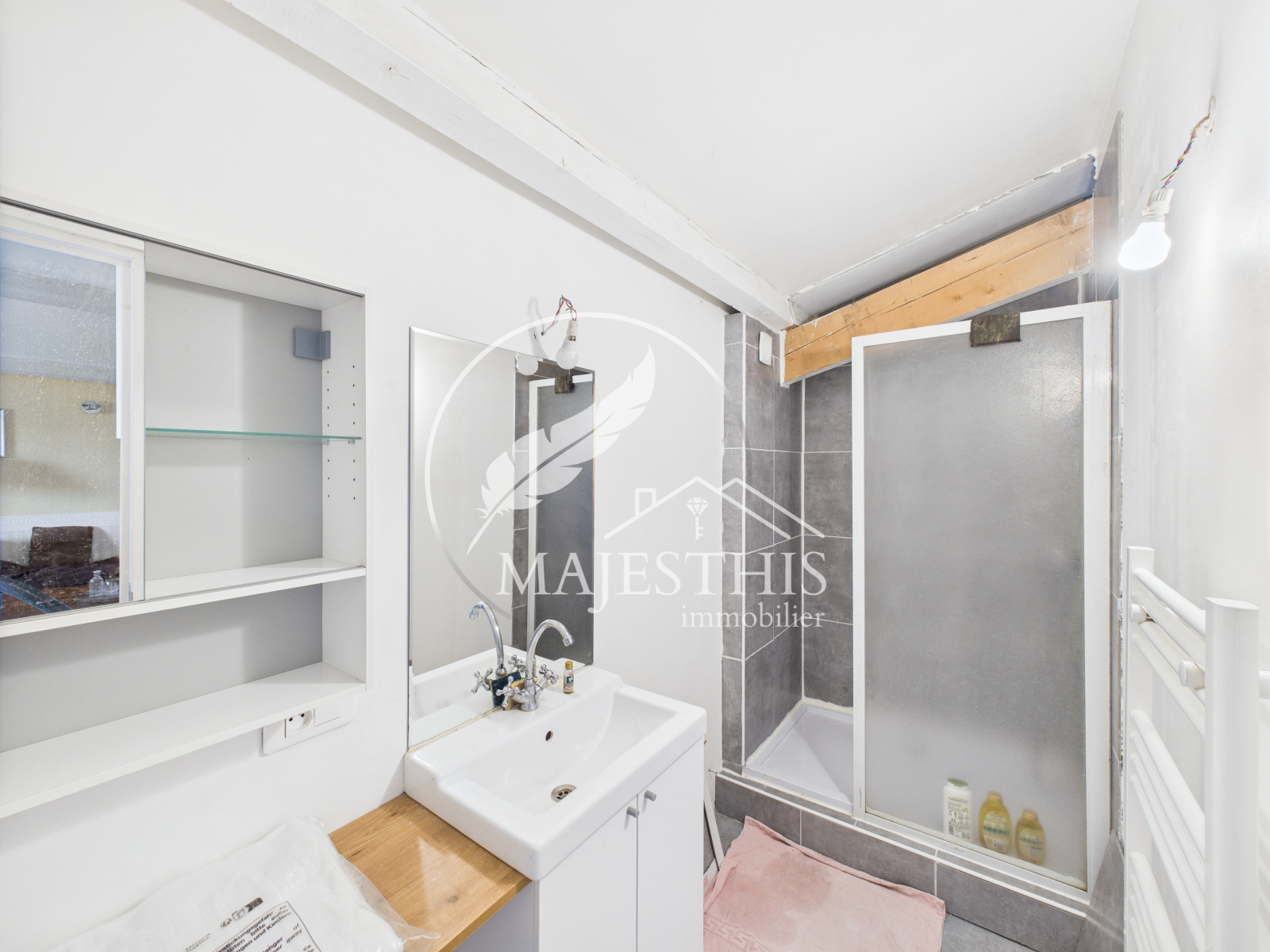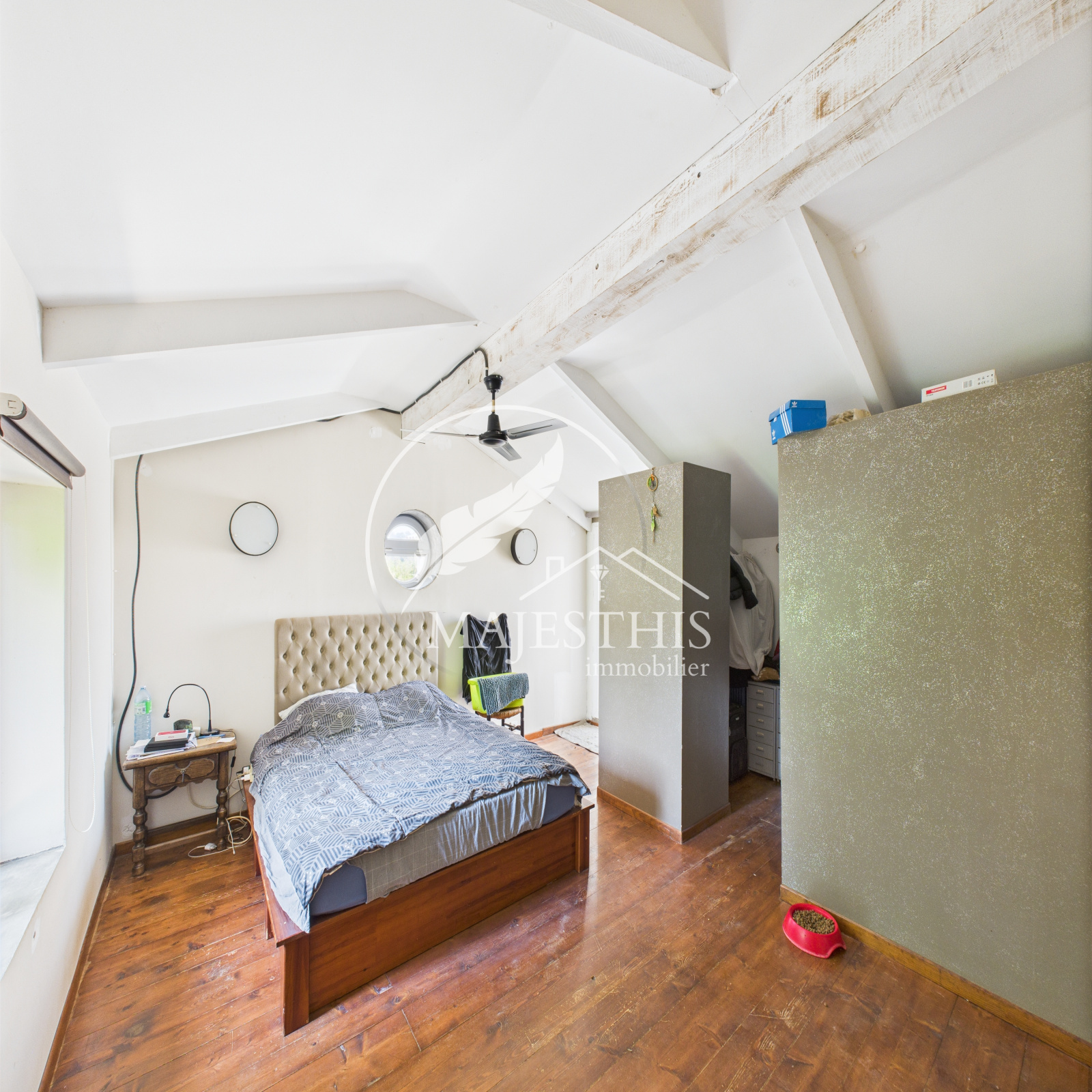 - Partie historique : un vaste séjour au rez-de-chaussée et, à l’étage, deux chambres, une salle d’eau et un dressing.