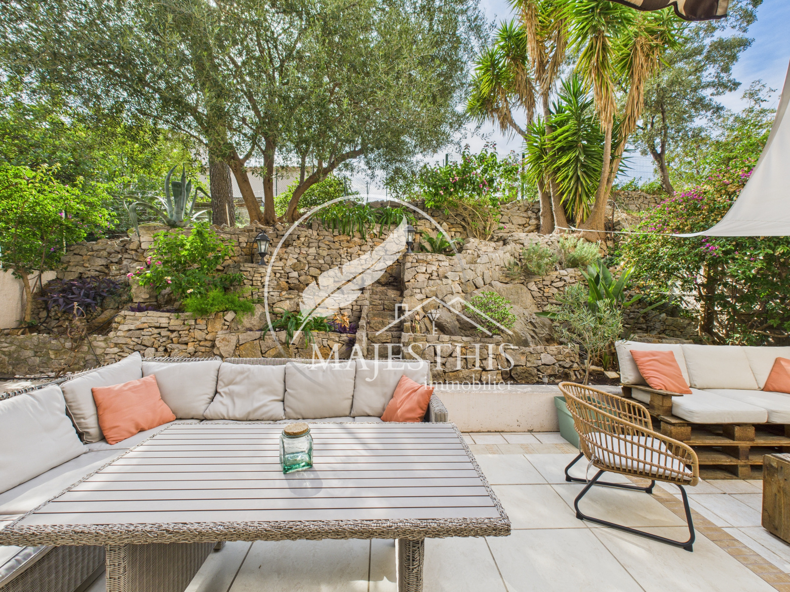 Sa terrasse de 35 m², agrémentée de jolis murets en pierre, constitue un véritable espace de détente, idéal pour vos repas d’été ou vos moments de convivialité.