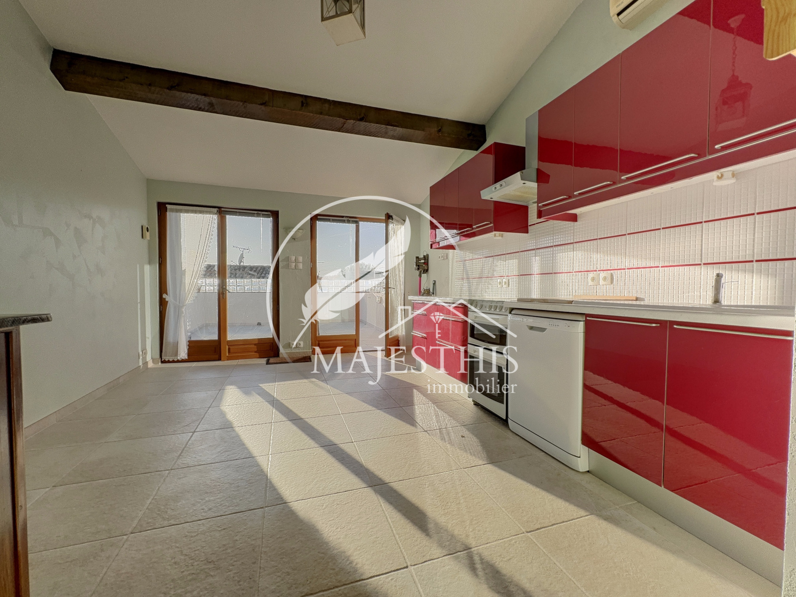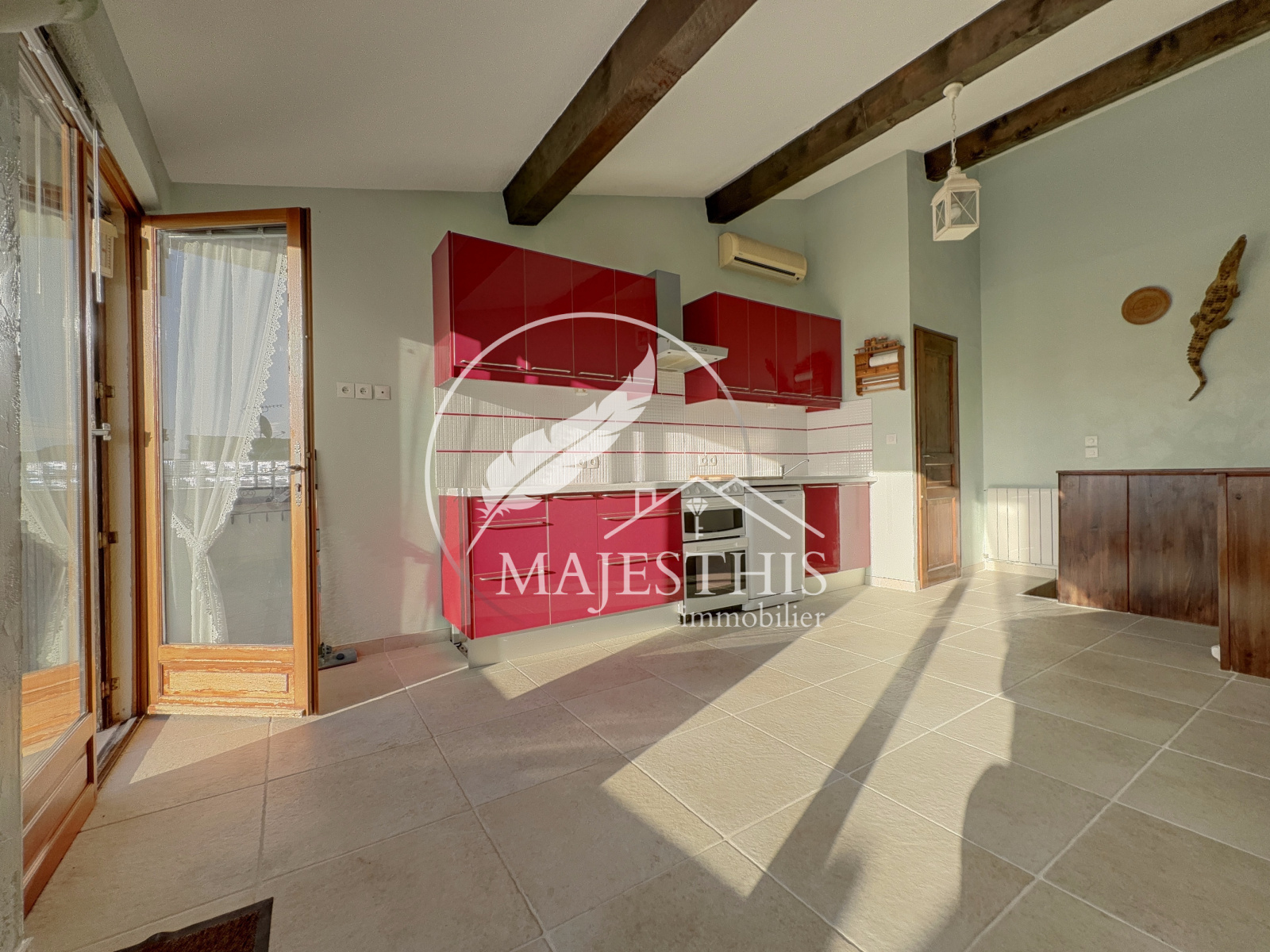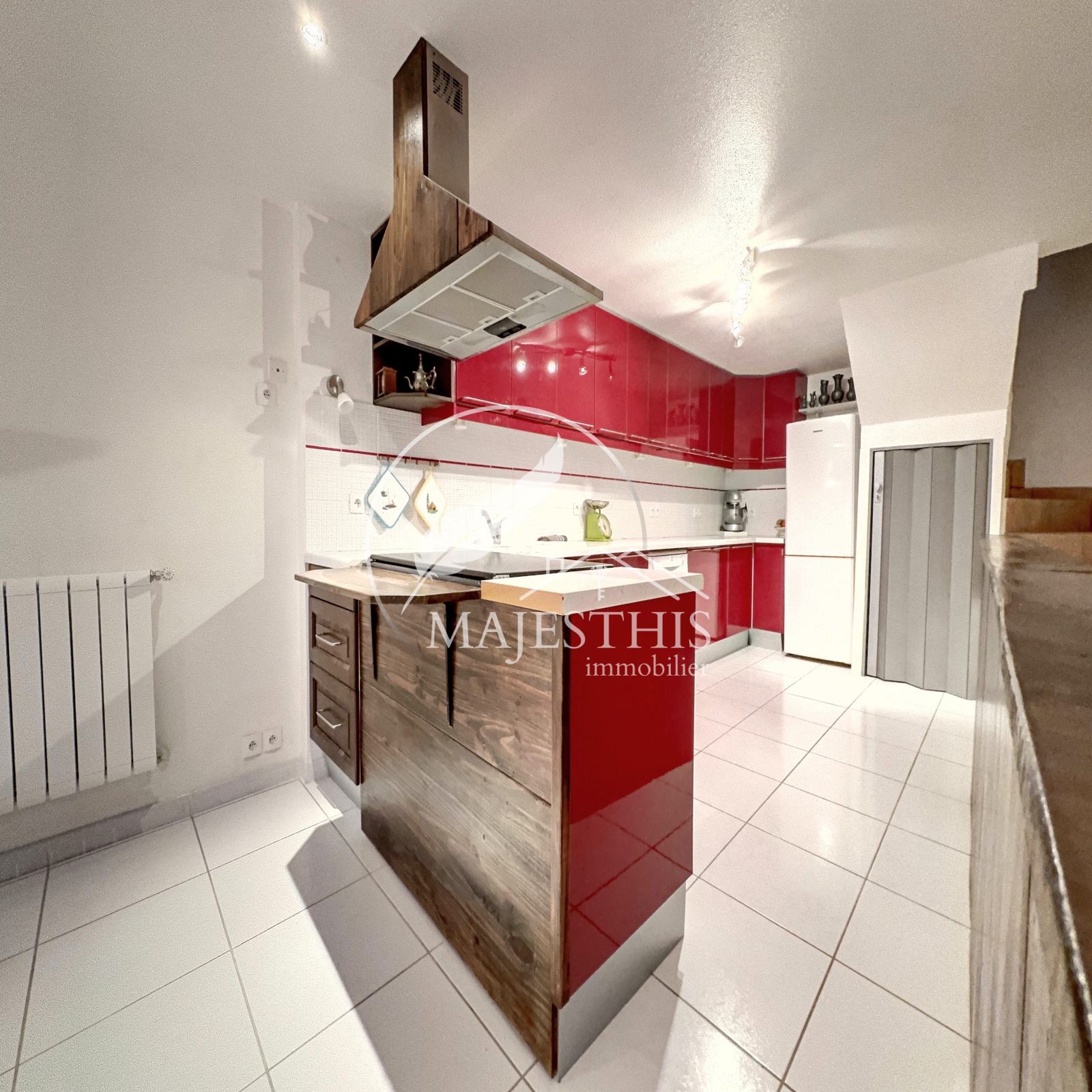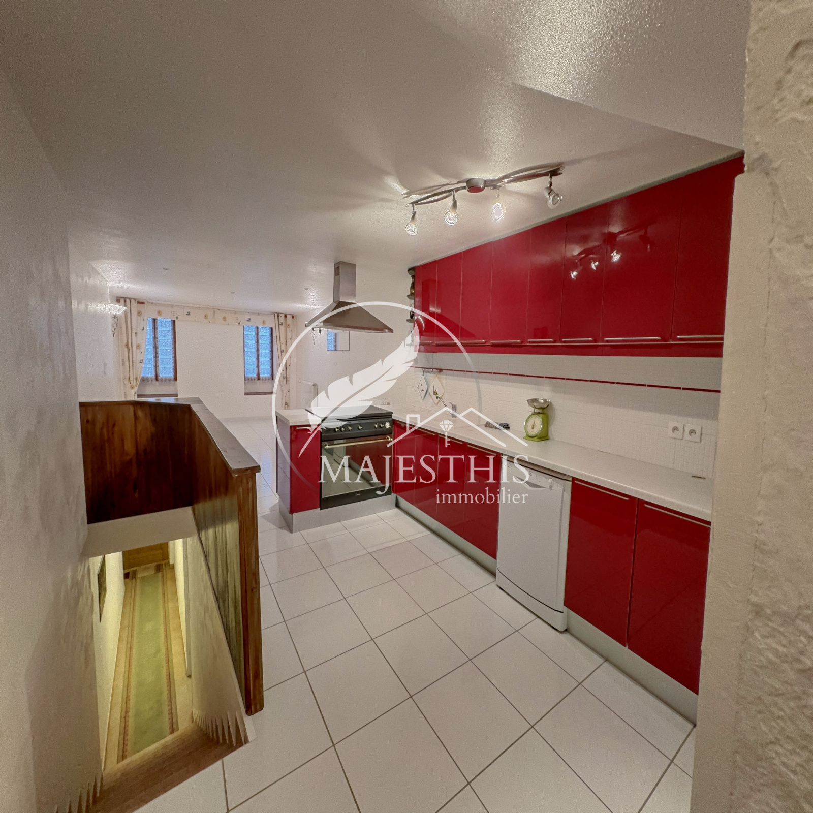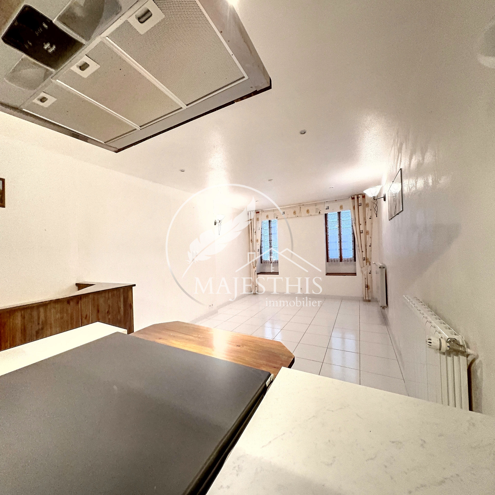 - Au premier étage : un séjour avec vaste cuisine américaine aménagée et équipée