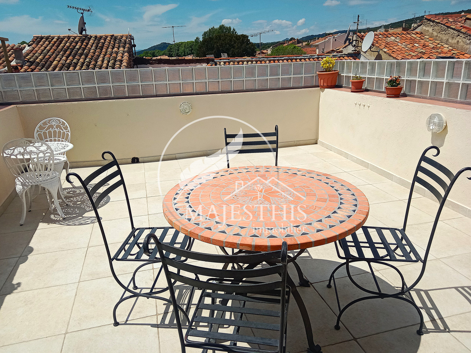 Son atout majeur : une splendide terrasse solarium au dernier niveau, véritable espace de vie à ciel ouvert, équipée d’une cuisine d’été et d’un WC. Elle offre une vue panoramique à couper le souffle sur les collines du massif des Maures d’un côté, et sur le village et ses toits pittoresques de l’autre. Un cadre parfait pour profiter pleinement du climat méditerranéen, recevoir ou simplement se détendre en toute tranquillité.
