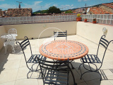 - Au quatrième : Une très belle cuisine d’été lumineuse, aménagée et équipée avec wc indépendant, donnant sur la terrasse solarium de 20 m² avec vue panoramique . Un store ban vous permettra d’être abrité des rayons du soleil en été.