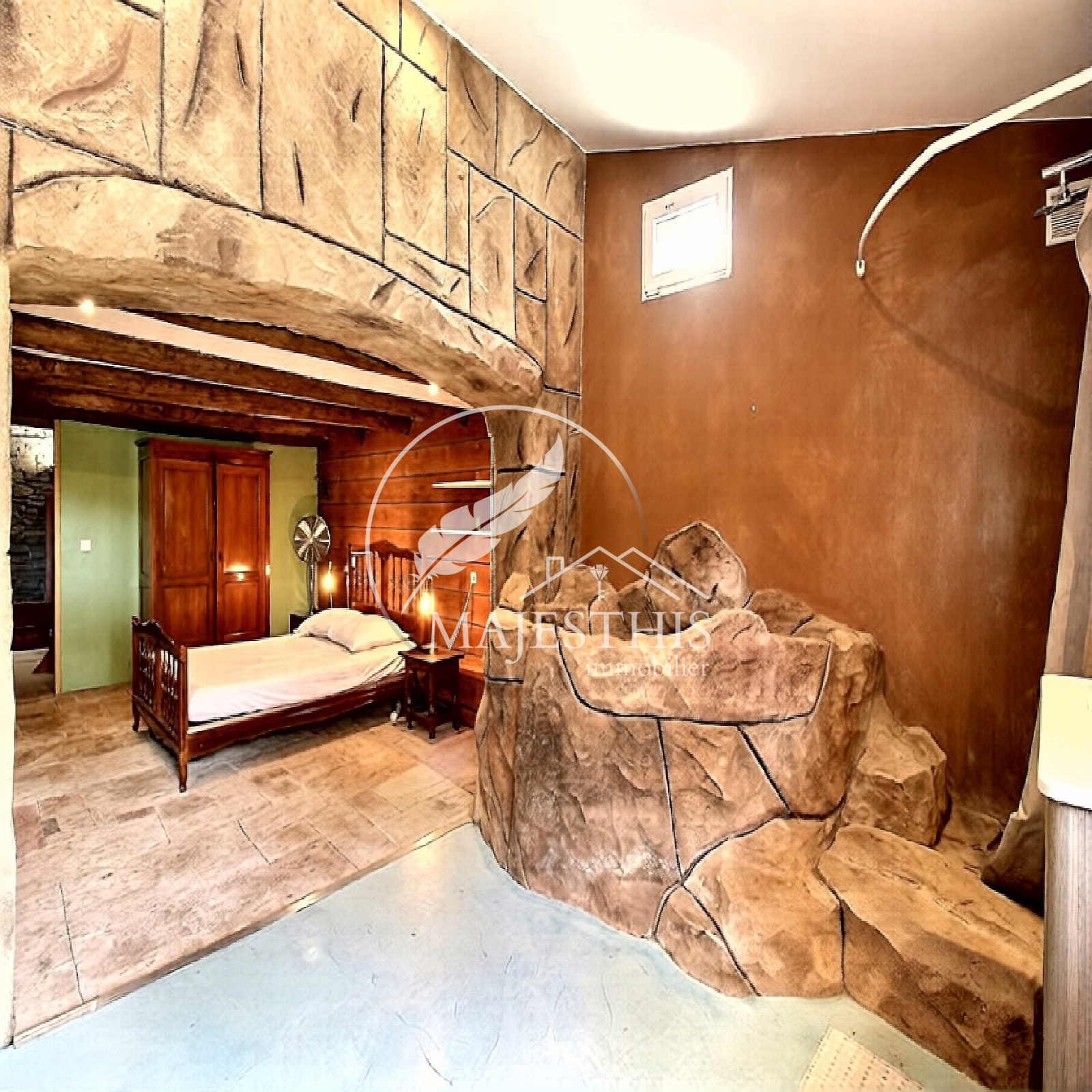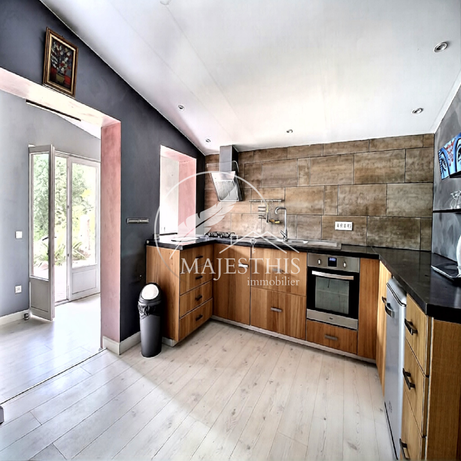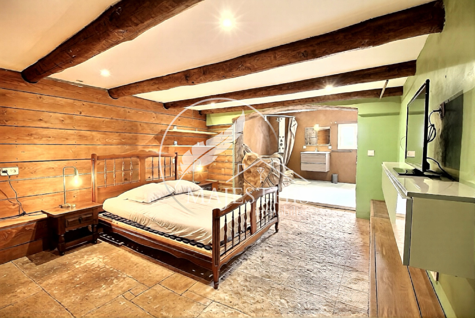 Belle hauteur sous plafond, vaste séjour lumineux, salle à manger avec cuisine, deux chambres dont une suite parentale.
