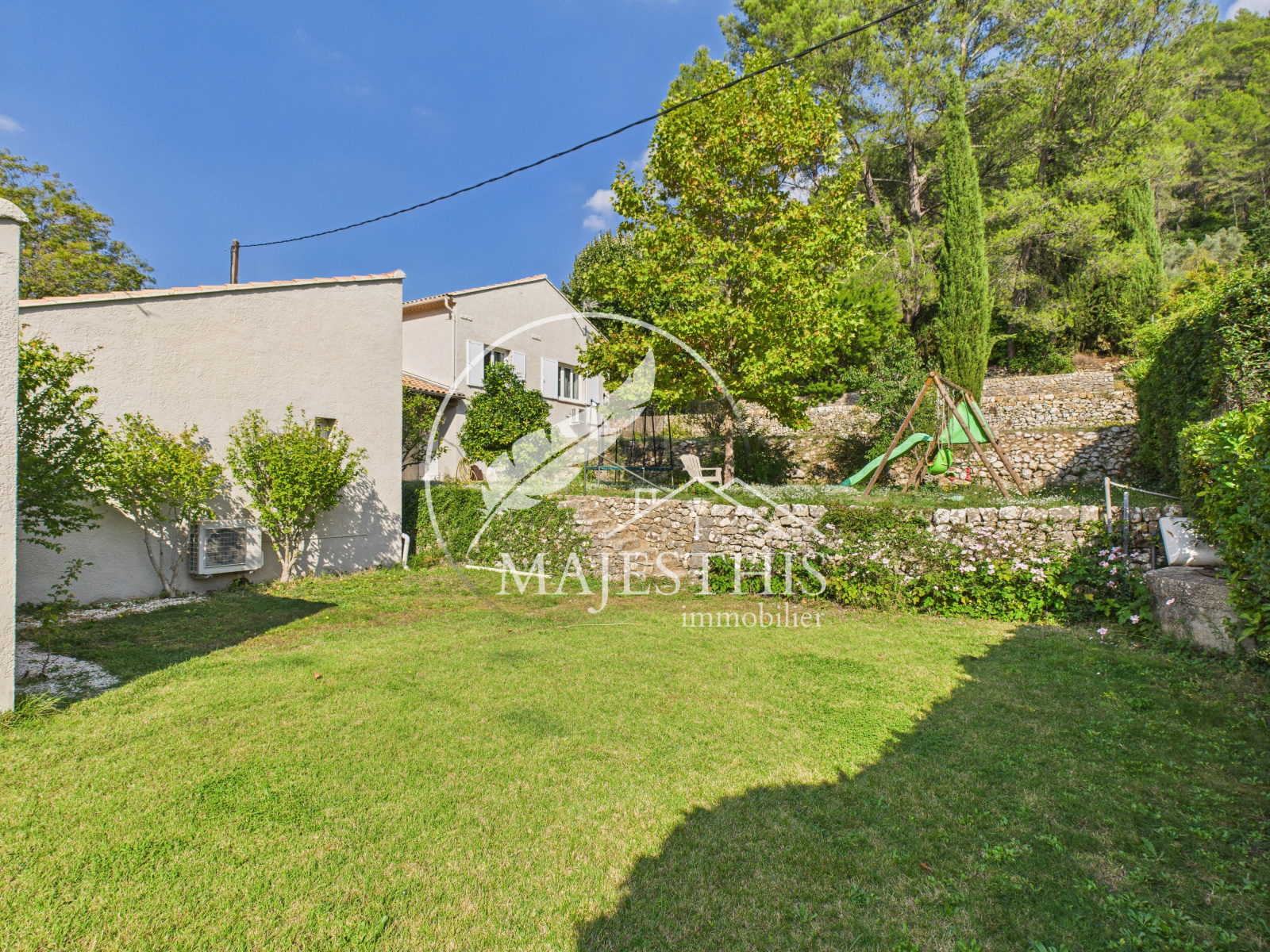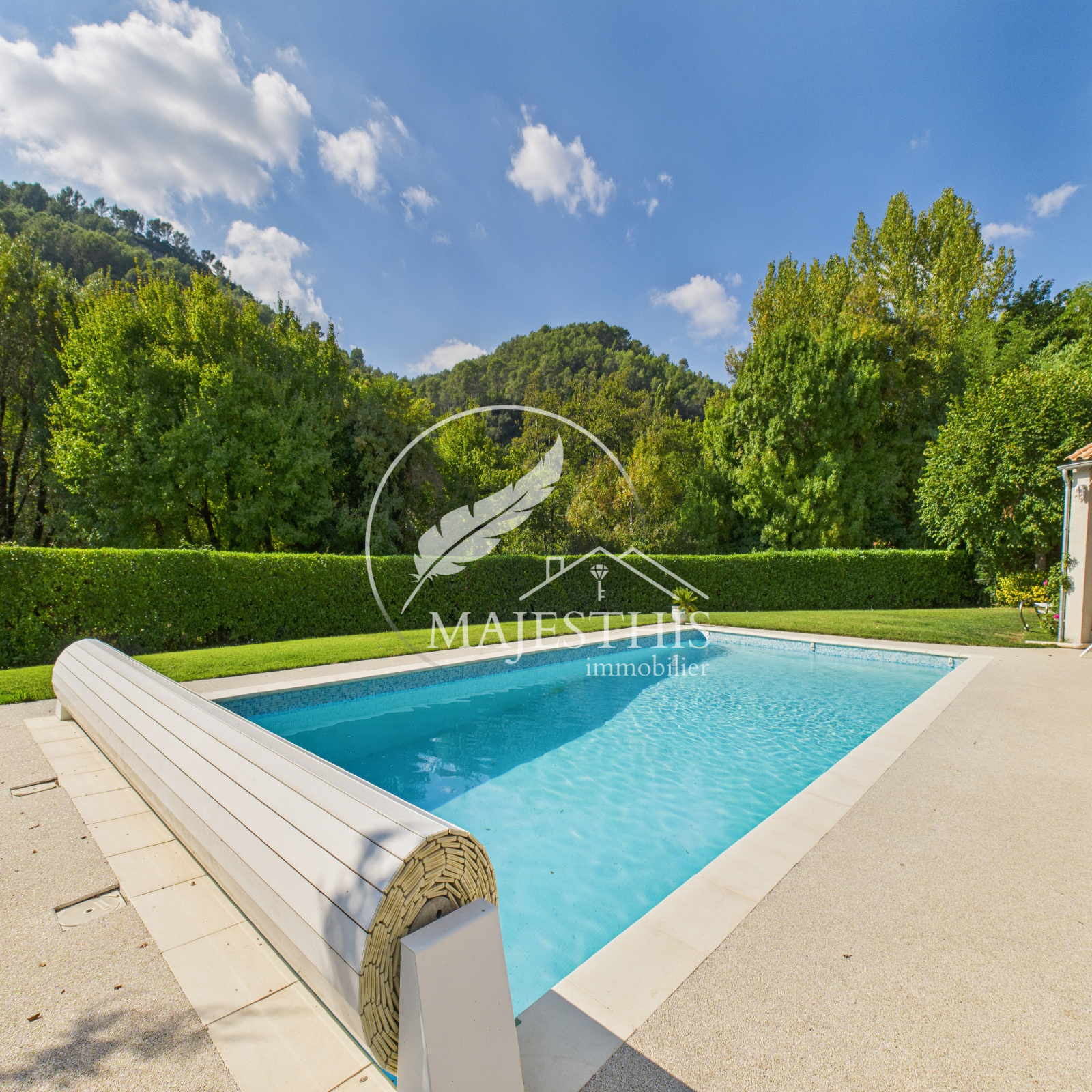 La partie principale du terrain, plane, accueille la maison, la grande piscine traditionnelle de 12x6 sécurisée et ses terrasses ensoleillées. Autour, de larges espaces verts invitent aux jeux d’enfants ou à la détente. Plusieurs restanques soigneusement entretenues structurent le jardin et accueillent de nombreux oliviers, un potager et un accès direct au Gapeau, pour un cadre de vie rare et authentique.